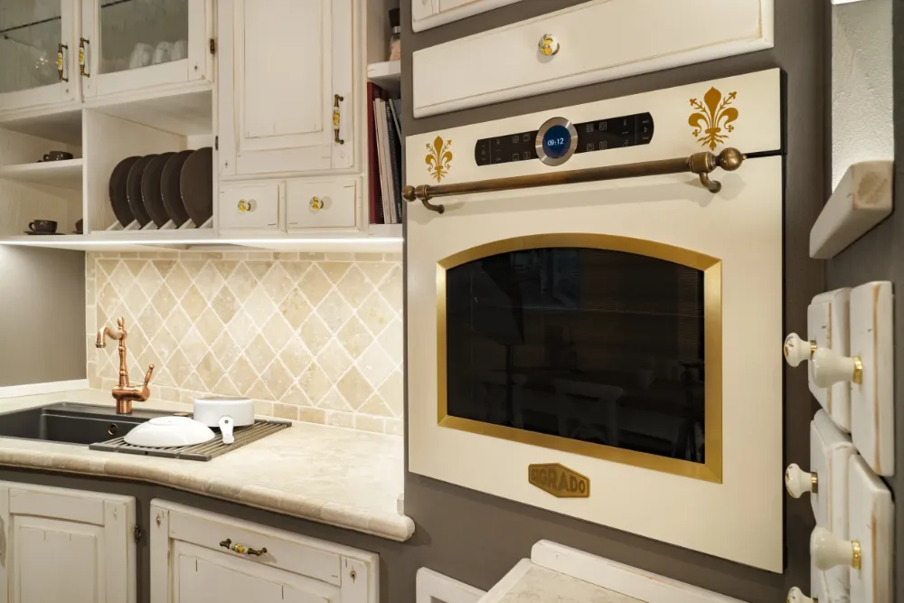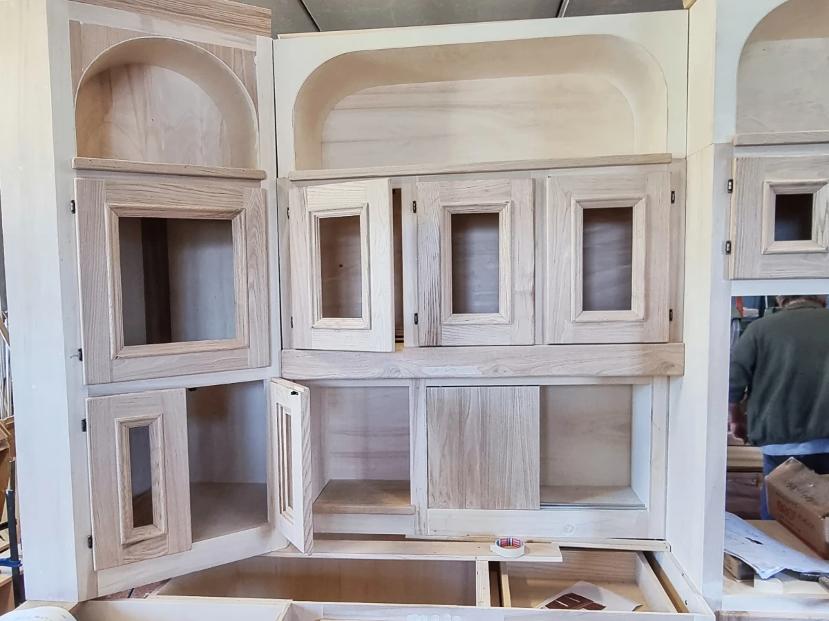 Der Korpus ist das Herz unserer Küchen und er hat ein einzigartiges Design. Ohne echtes Mauerwerk erwecken wir das Erscheinungsbild einer gemauerten Küche mit Rundbogen, Gesims und Putzoberfläche – eine alte Tischler-Tradition aus Italien.